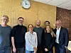 PÅ BESØK: (F.v) Professor Petter Nielsen, Førsteamanuensis Troels Mønsted, Marte Liahjell Ellingsen (student), Johan Ivar Sæbø, Amalie Byklum Eskedahl (student, foran), Hallvard Kvale (Abelia, bak), og Øystein Eriksen Søreide (Abelia).