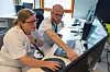 Atrieflimmersykepleier Merethe Løkkeberg Jespersen og kst. overlege Trygve Berge ved Atrieflimmersenteret gransker EKG-registreringene som pasientene har sendt inn.