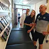 KJENTE IGJEN ANSATTE: Da Ella Squires kom til barneavdelingen, så hun på bilder av ansatte og kjente igjen de som hadde hjulpet henne. Bak henne Søren Pischke, konstituert avdelingsleder, foran hennes far Paul Squires.