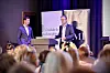 TERSKELVERDI: Ole Magnus Stokke (t.v) og Erland Skogli fra Menon Economics stod for presentasjonen av rapporten «Vurdering av ny terskelverdi for et godt leveår».