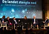 FHI-direktør Guri Rørtveit i diskusjon om forskningens rolle i pandemihåndteringen, på DM Arena-konferansen Da landet stengte ned - fem år siden pandemien traff Norge.Foto: Tone Herregården