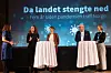 HElsepersonells om sto i førstelinjen delte av sine opplevelser. Fra venstre Kari Bue, intensivsykepleier ved Rikshospitalet, Fridtjof Heyerdahl, overlege i anestesiologi ved Luftambulanseavdelingen ved Oslo universitetssykehus, Kerstin Anine Johnsen Myhrvold, kommuneoverlege og samfunnsmedisiner i Nordre Follo kommune og Bjørn Sletvold, medisinsk fagsjef i byrådsavdeling for helse, Oslo kommune.Foto: Tone Herregården