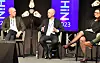 UTEN FAKKELTOG OG LESERINNLEGG: Lederen for Kernel og Dips Arena Thomas Smedsrud (i midten) fremhevet at Dips har innført en ny versjon av sitt journalsystem uten å skape overskrifter. Fra venstre: Johan Ronæs, administrerende direktør i Norsk helsenett, til høyre Mariann Hornnes, direktør i Direktoratet for e-helse.