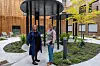 UTE, MEN INNE: Samira Makoudi fra Bølgeblikk Arkitekter AS (t.v.) og avdelingssjef akuttavdeling, Sølvi Johansen Brøvig, i atriet som gir pasientene ved klinikk for psykisk helse og rus, Vestre Viken, mulighet til å være ute uten å gå ut av bygget.