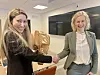 FIKK PENGER TIL FORSKNINGEN SIN: Forsker Dana Kristjansson (tv.v) fikk også blomster fra forsknings- og høyere utdanningsminister