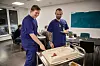 FEIRET MED KAKE: Pleieassistentene Odd Einar Veie (t v) og Teodor Barstad Fenre forsynte seg av kake på Staup helsehus i Levanger da Helseplattformen var på lufta.