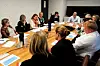 LYTTER: Helsestatsråd Jonas Gahr Støre lyttet til hva representantene for fagforeningene og Norsk Pasientforening hadde å si om hans ti sykehusgrep, etter at han hadde orientert om status for hvert enkelt punkt. Innspillene gikk ikke minst på lengre åpningstider, en heltidskultur, bedre oppgavefordeling mellom ansatte og god ledelse. Alle foto: Vidar Sandnes.